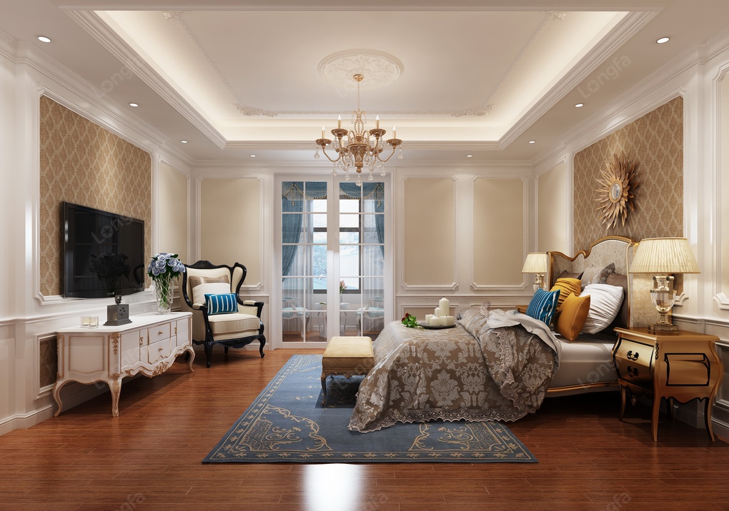 主卧运用家具及陈设品来烘托室内环境气氛,白色、黄色是此设计的主色调,少量白色糅合,使色彩看起来明亮。