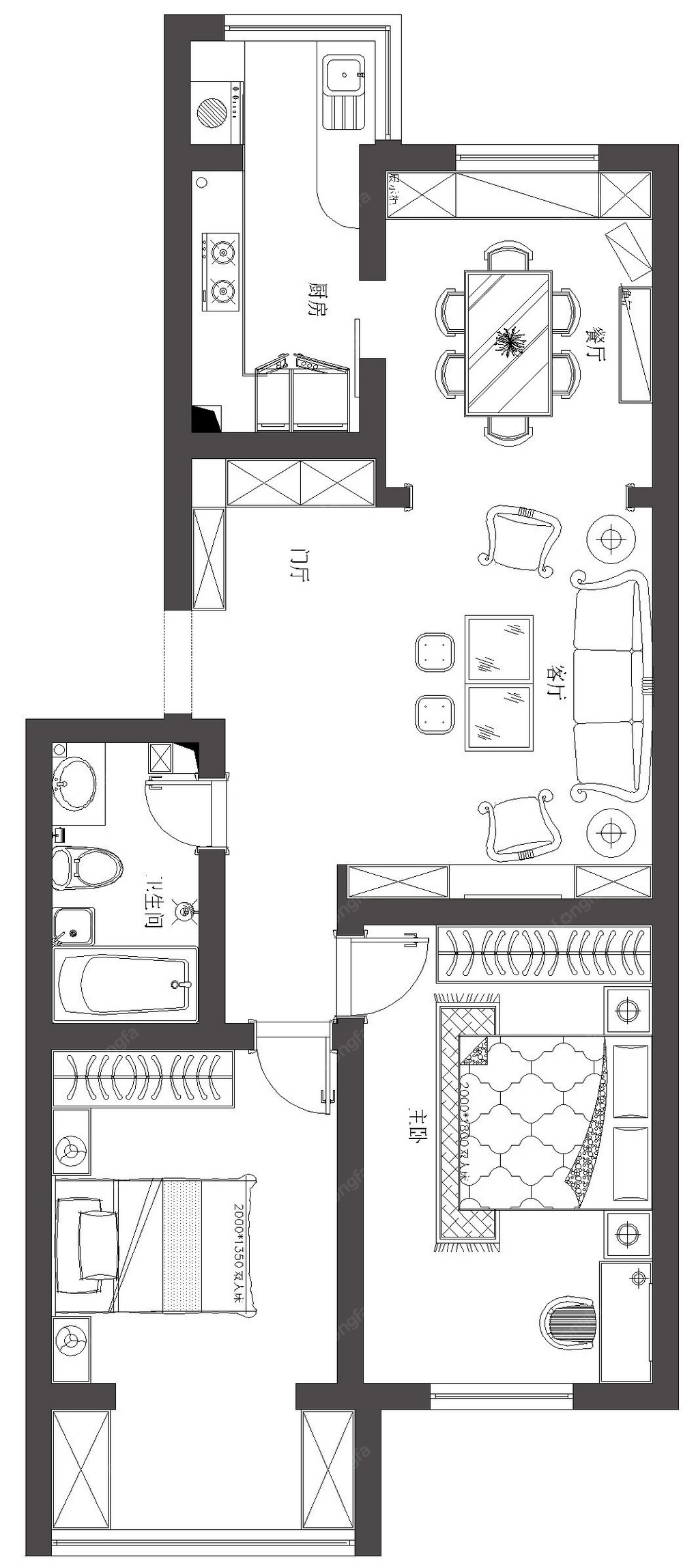 简洁的墙面造型和顶面造型以及局部地面造型,配以少量略带金属感的家具,使整个空间给人一丝不苟的印象。