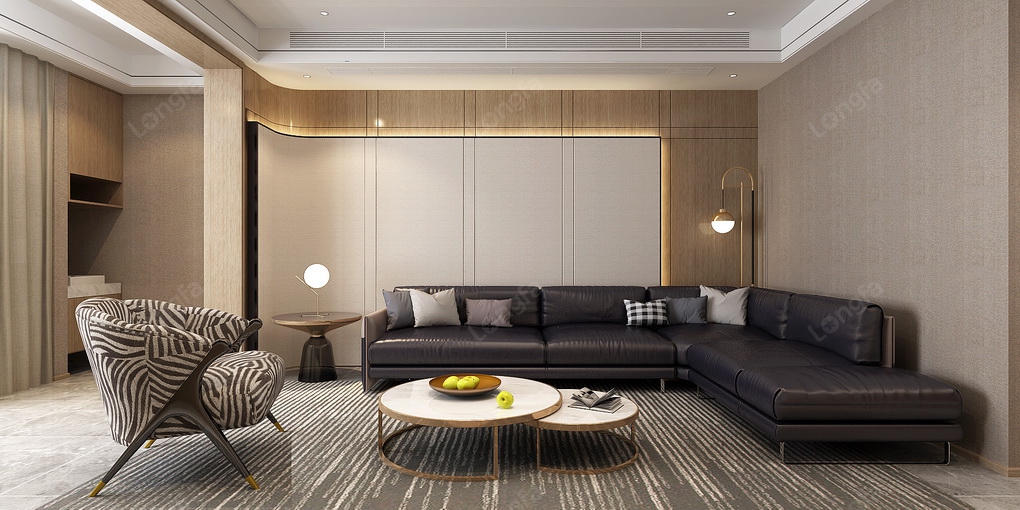 精致客厅,刚柔并济,背景墙上的弧形线条造型,冲淡了过于冰冷的气息,悄然流露出高雅的艺术品位。