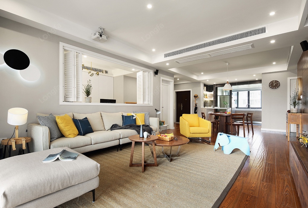 沙发单椅与抱枕采用纯度较高的黄色来提亮空间,使整体空间更加丰富。