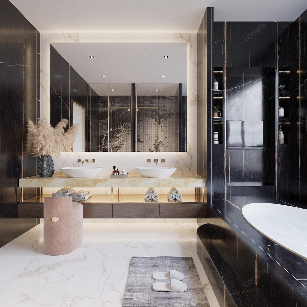 主卫生间做了四分离卫生间,独立的马桶间,独立的淋浴间,以及手盆,靠窗的浴缸,夫妻二人同时使用互不干扰,整体大理石铺设,简单奢华。