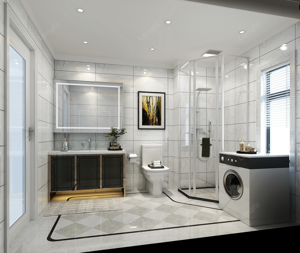主要在地面上做出简单造型提升设计感,在浴室柜选择上给空间更多的遐想。