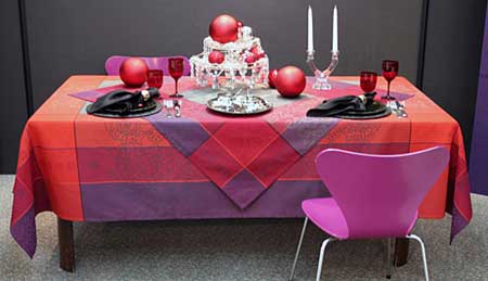 日式餐具,鲜艳的桌布,营造一种异域风情。