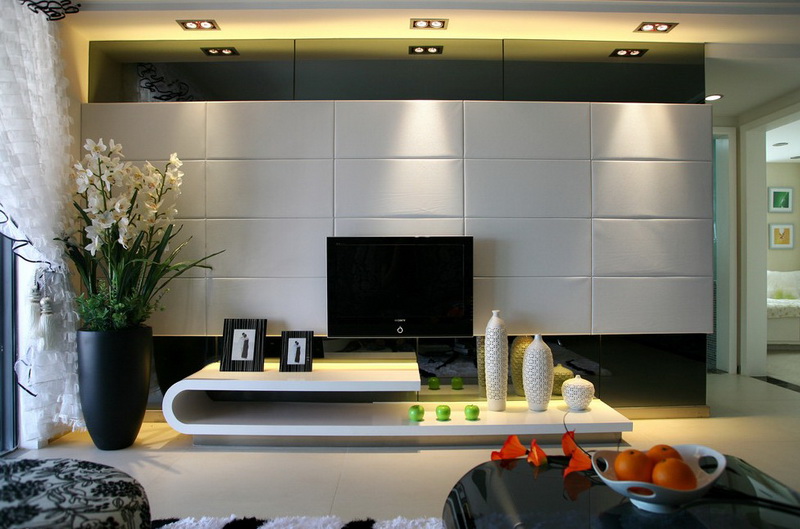 3.电视墙装修的电视机与吊顶的光线:电视墙一般与顶面的局部吊顶相呼应,吊顶上一般都有灯,所以要考虑墙面造型与光线相呼应,还要考虑不要强光照射电视机,避开观看节目时眼睛疲劳。